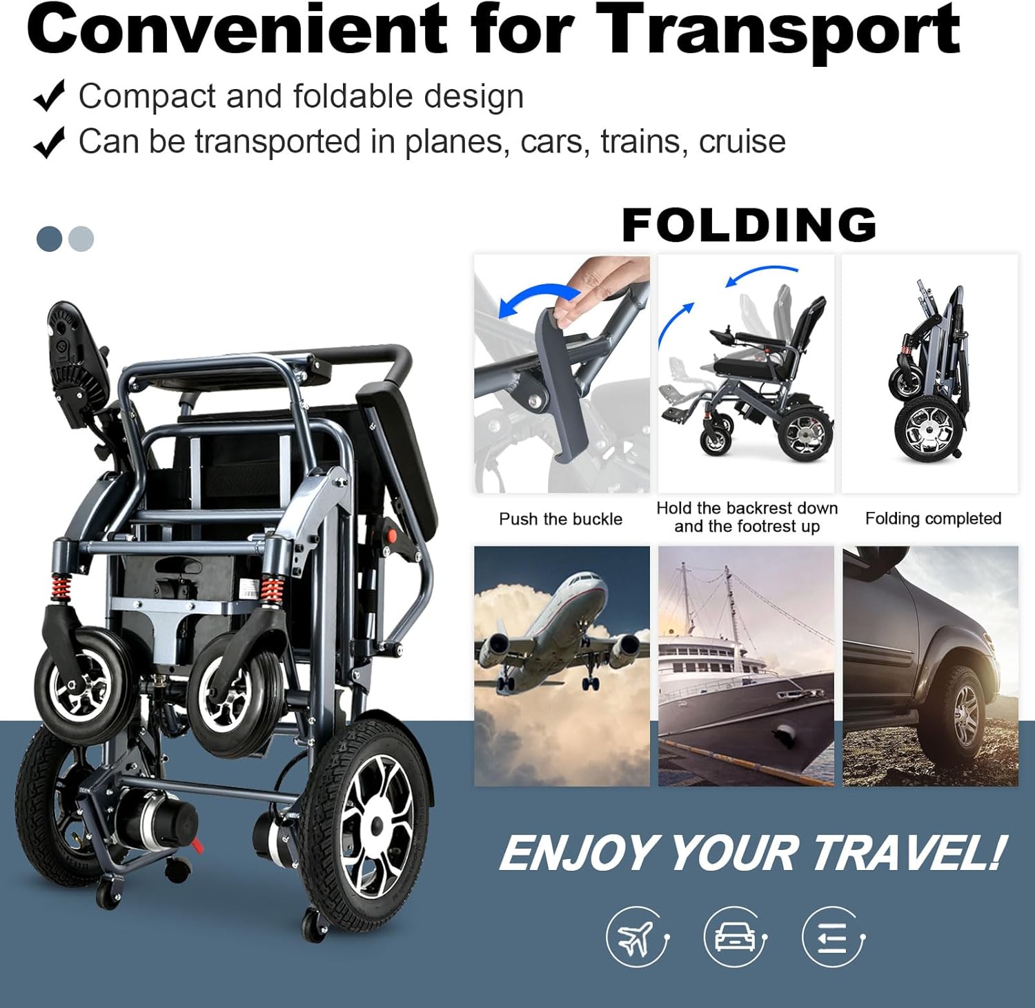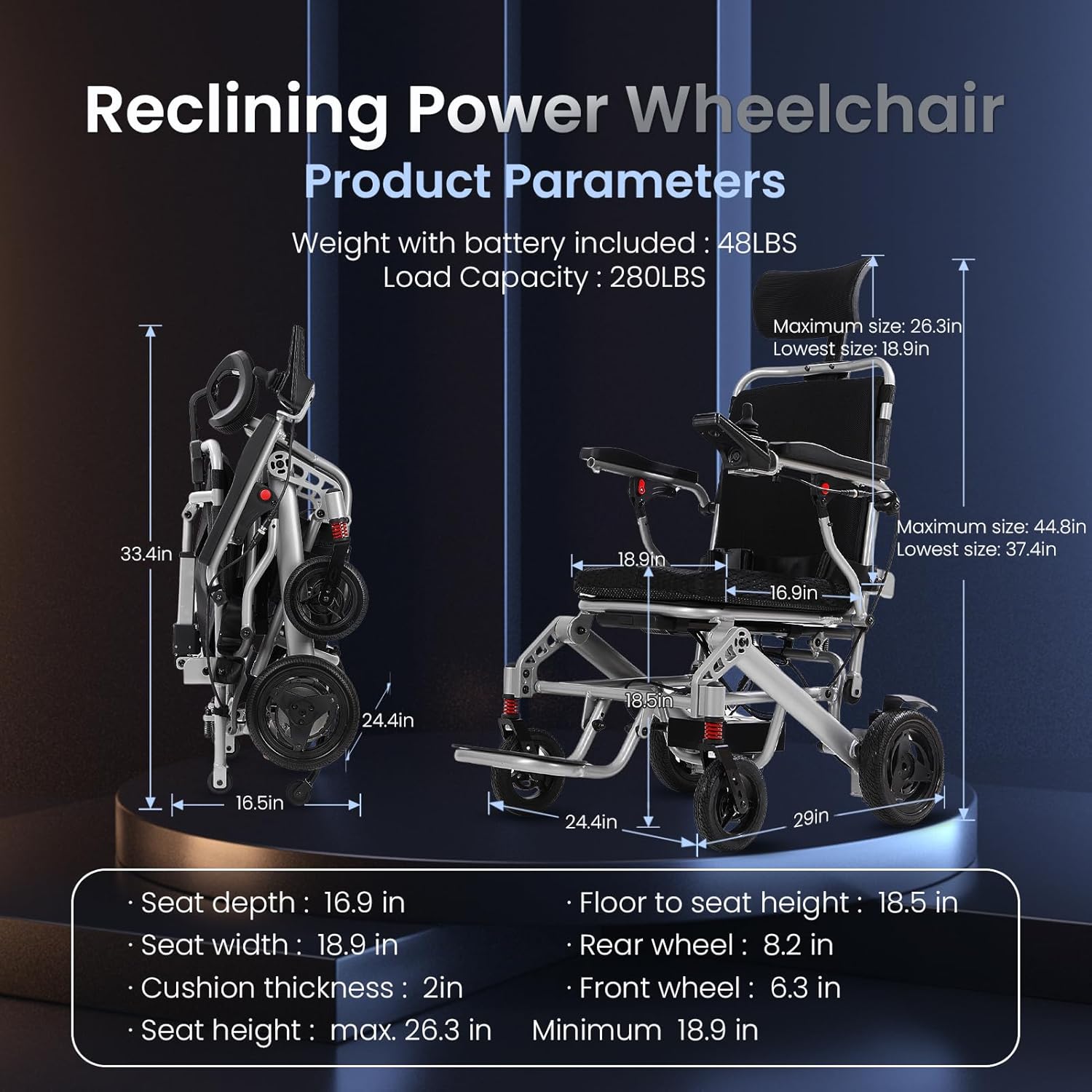 2025 Reclining Electric Wheelchair – 30+ Mile Range, Foldable All-Terrain Power Chair with Dual Batteries, Headrest & Telescopic Handle