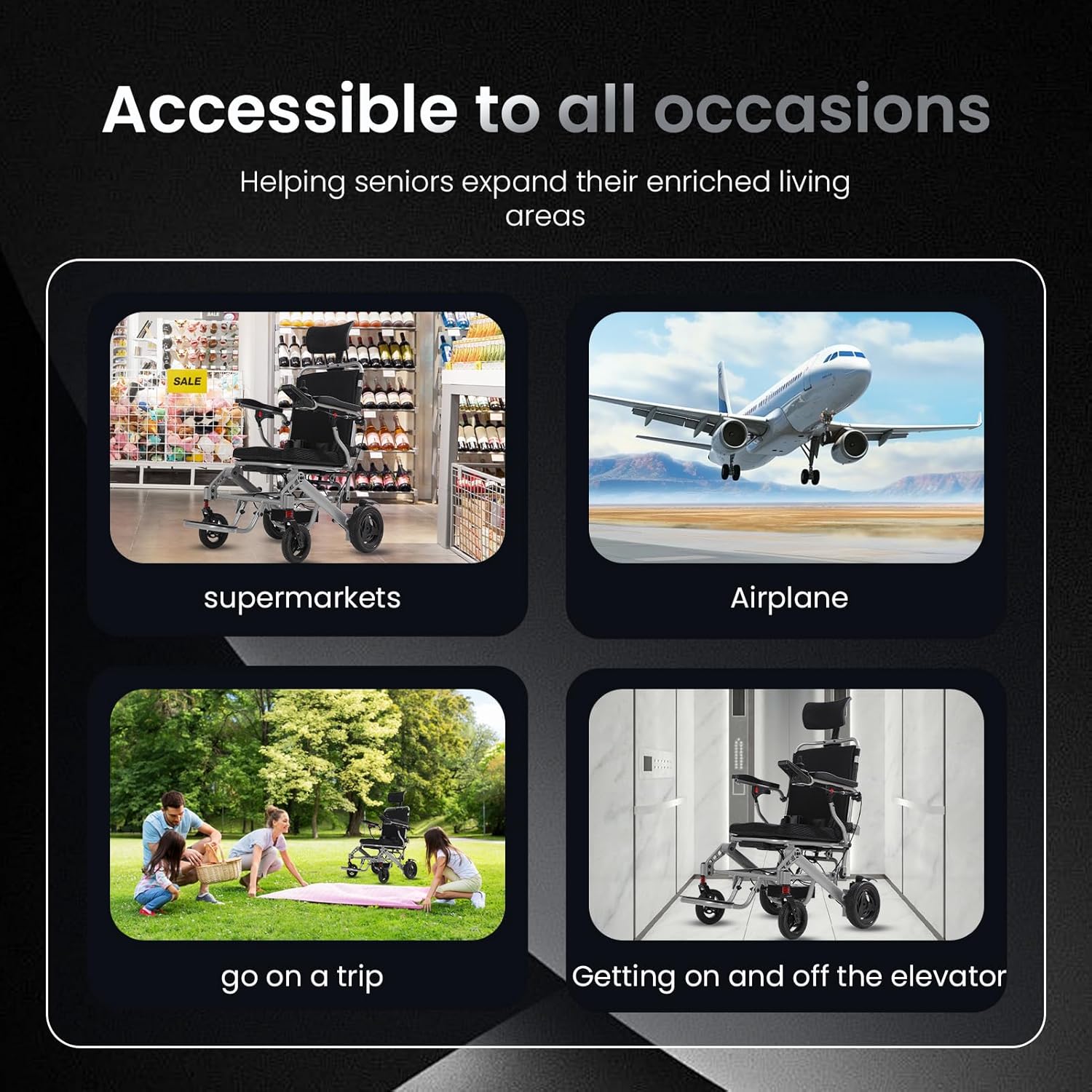 Whether navigating shopping malls, museums, or amusement parks, this power chair provides safe, smooth, and quiet travel. The anti-tilt rear system ensures top-tier stability even on uneven surfaces.