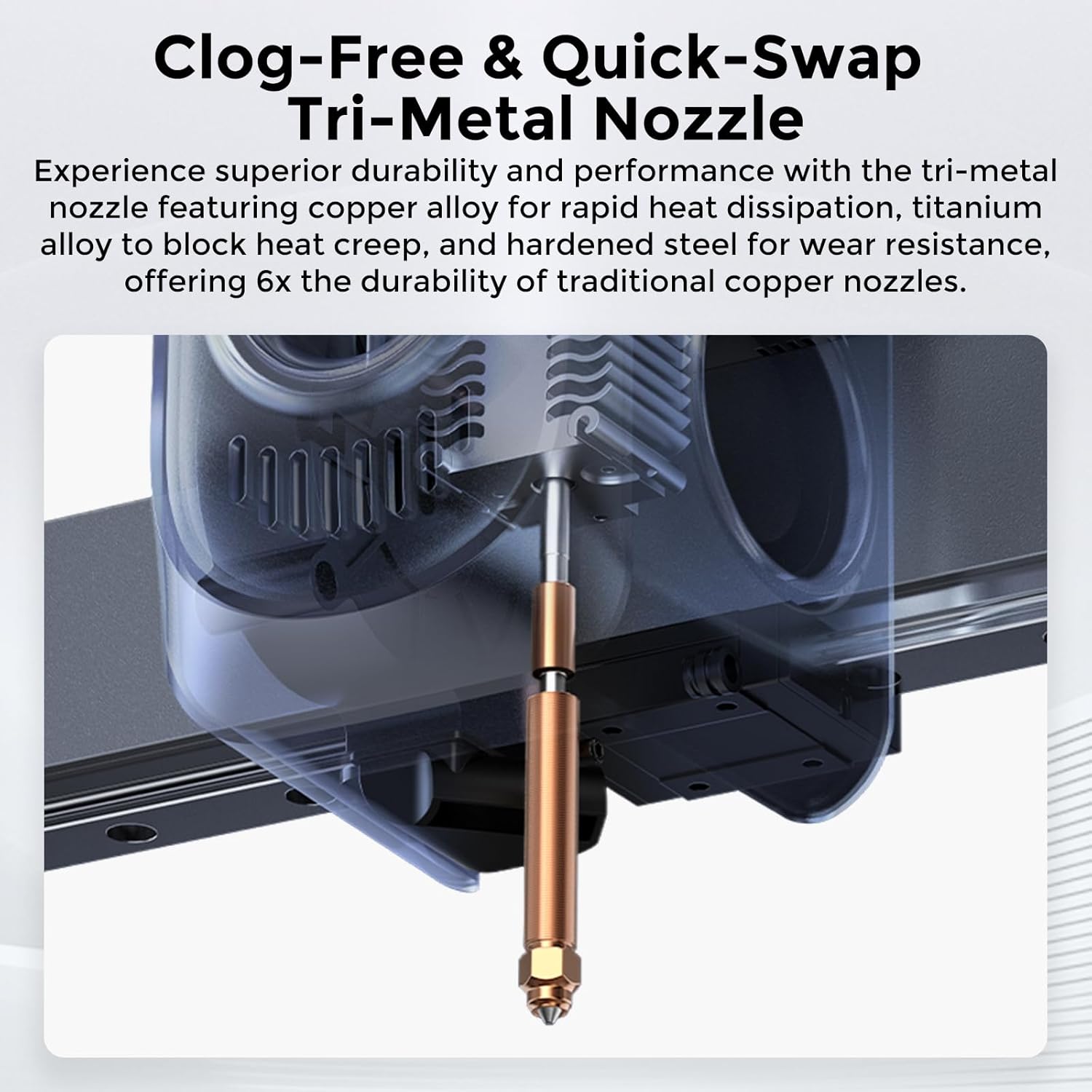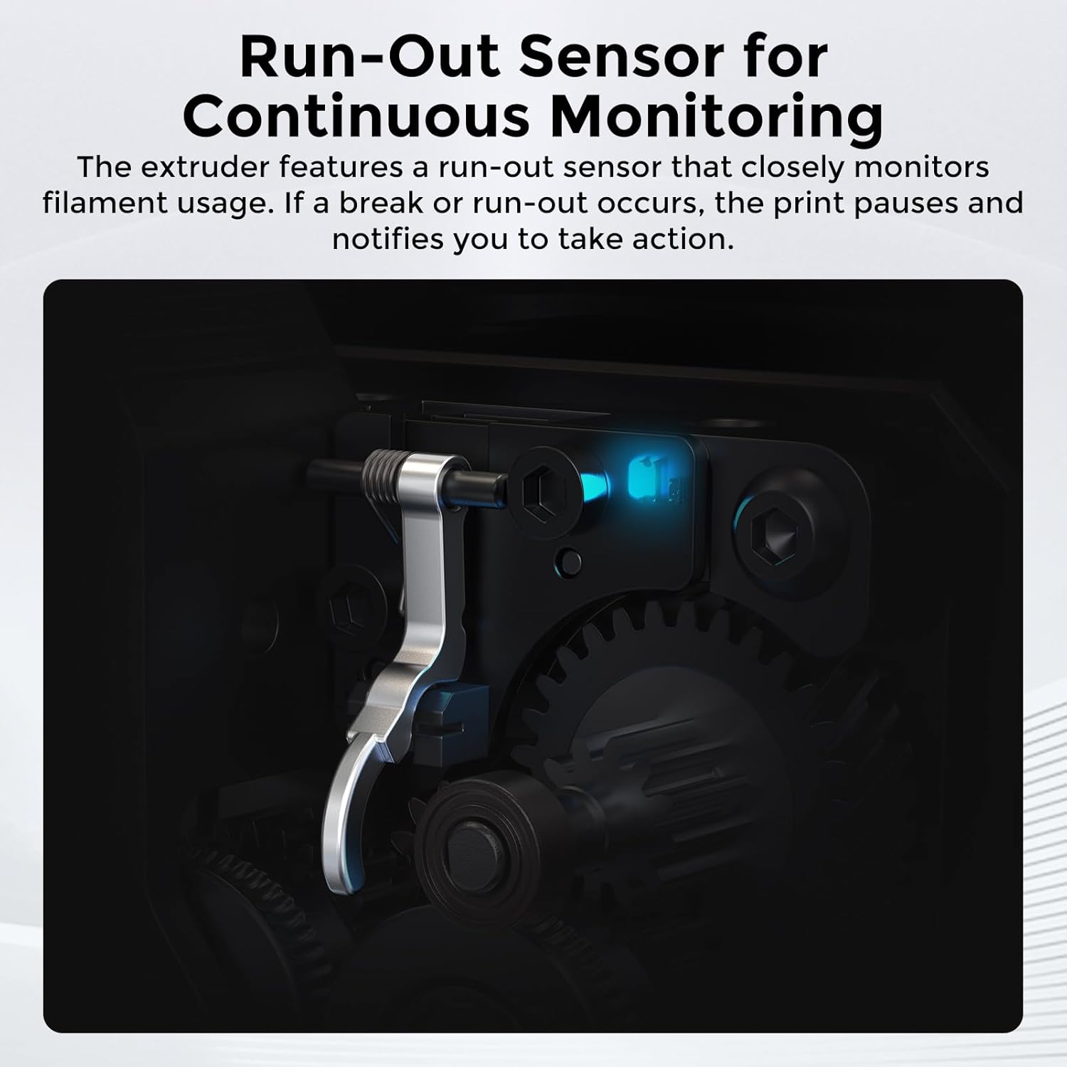 All-Metal Dual-Gear Extruder – Features a durable, near-end drive system for smoother filament feeding, reduced clogs, and reliable long-duration printing.