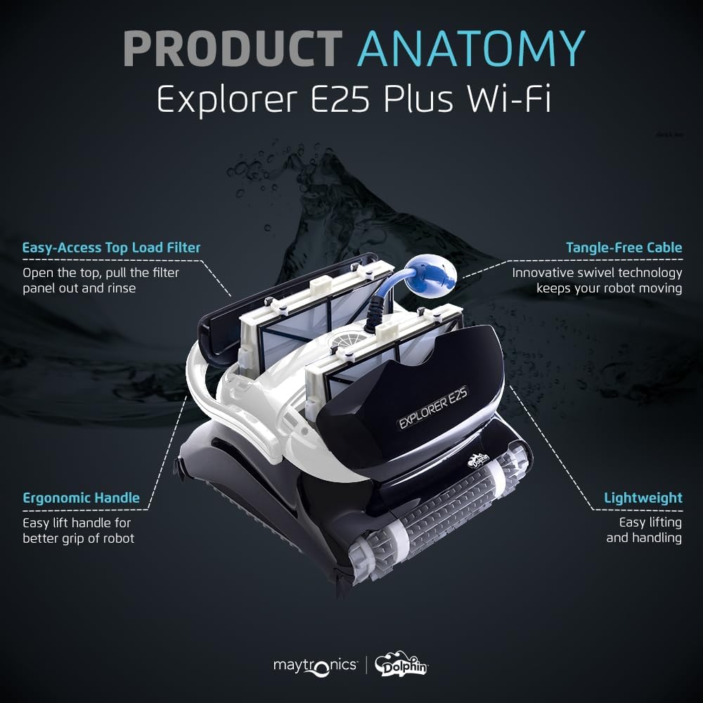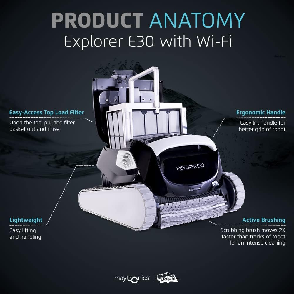 Dolphin Explorer E40 Robotic Pool Cleaner with Wi-Fi – Wall-Climbing, Waterline Scrubbing, Dual Drive Precision, for Inground Pools up to 50 ft