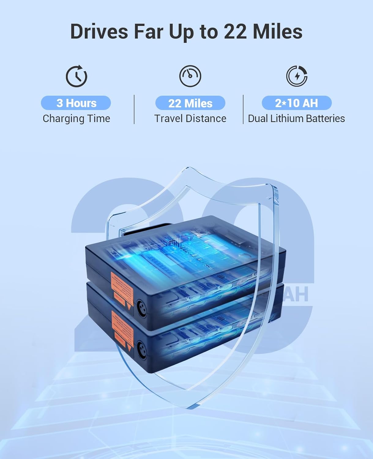 Powered by two 10Ah lithium batteries, this electric wheelchair offers an impressive 22-mile range on a single charge—ideal for longer journeys with fewer recharges. -