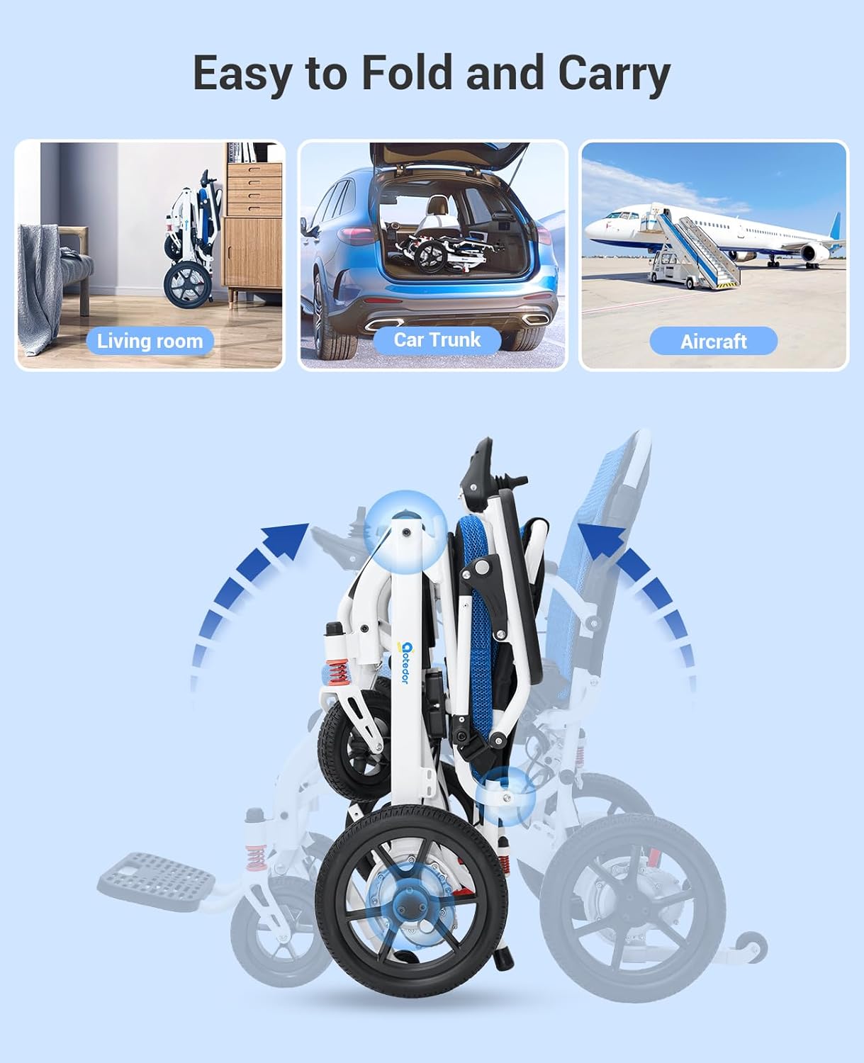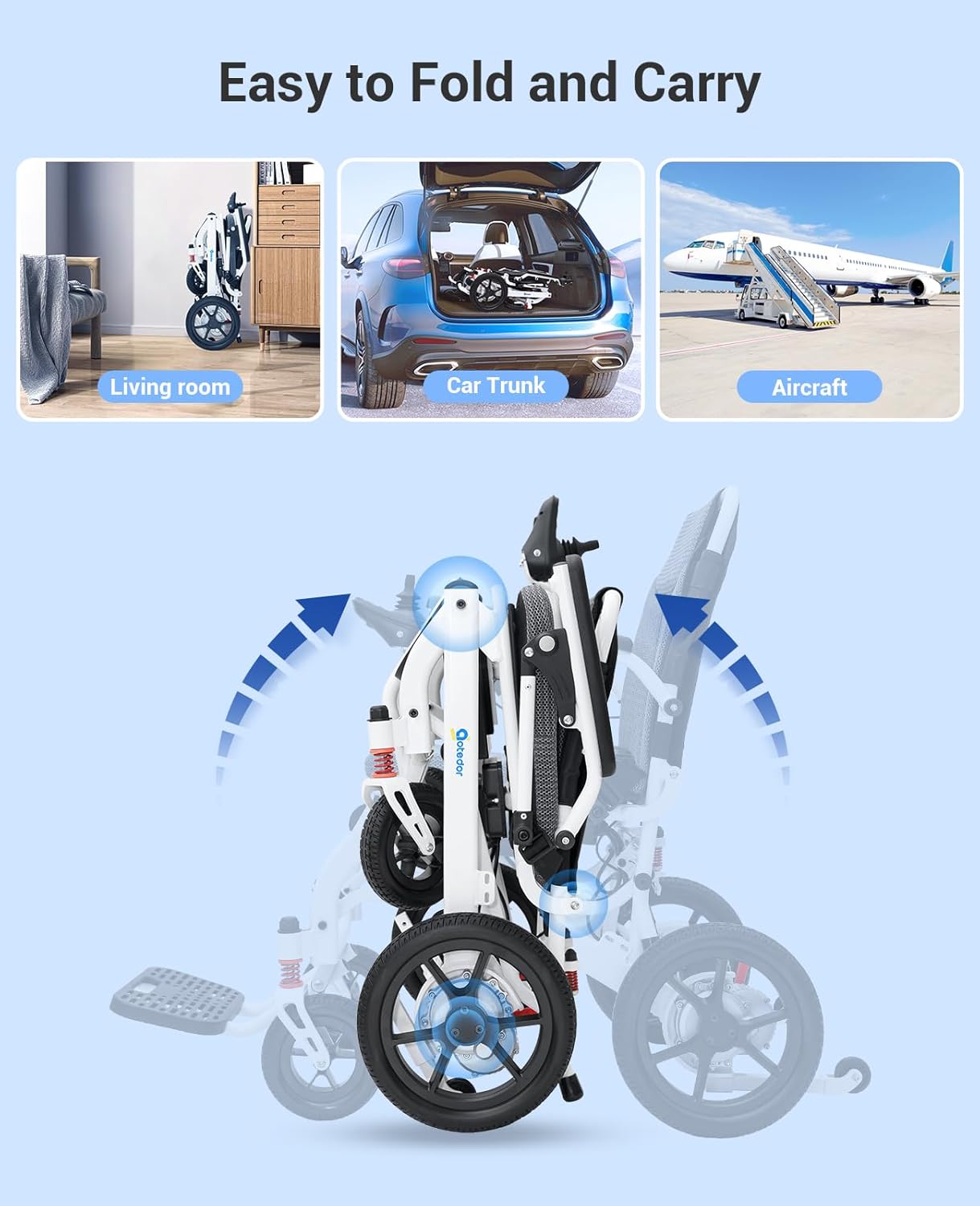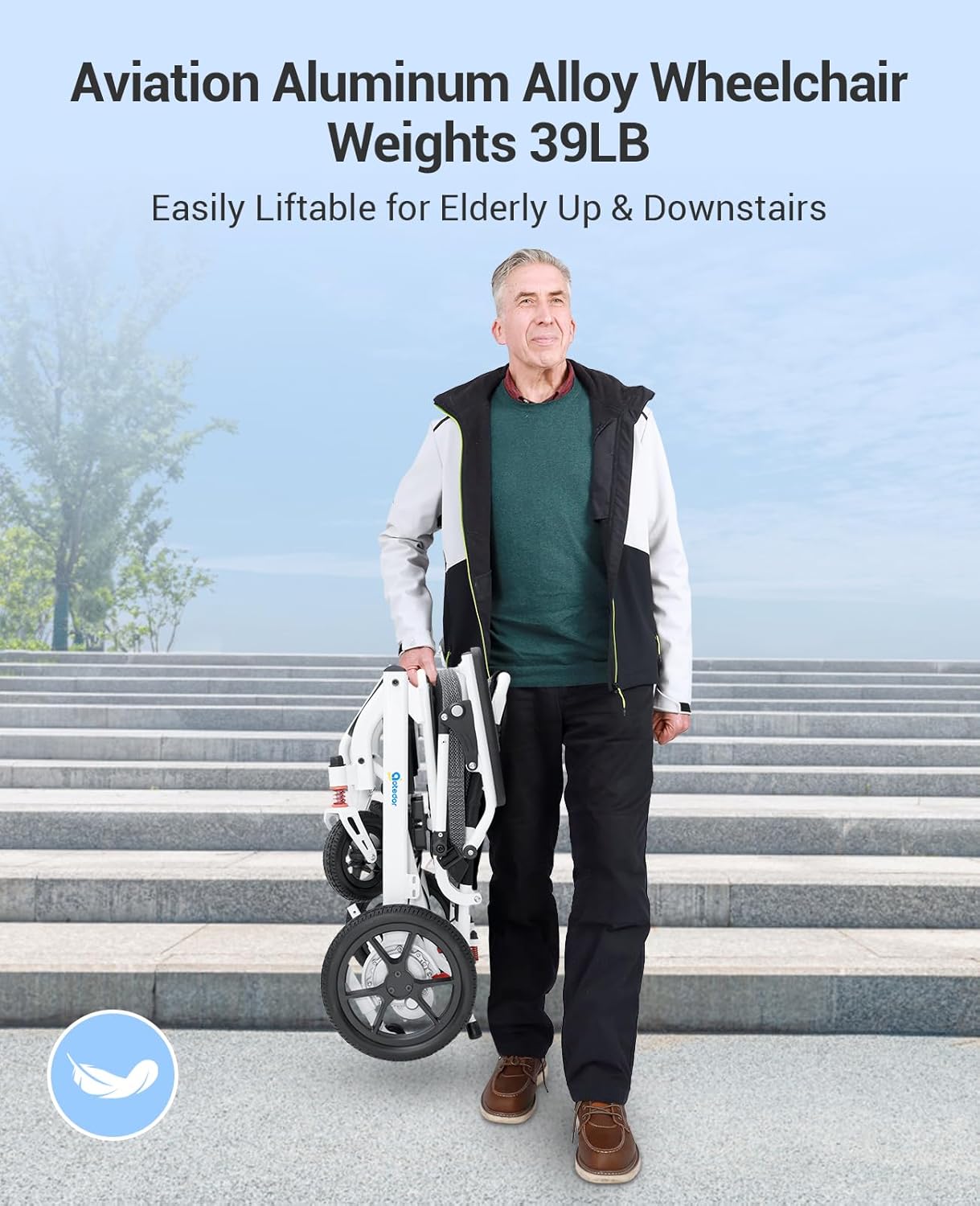 Weighing just 39 lbs, this chair is built with aviation-grade aluminum, making it durable yet easy to lift. Folds in 3 seconds for convenient transport and storage.