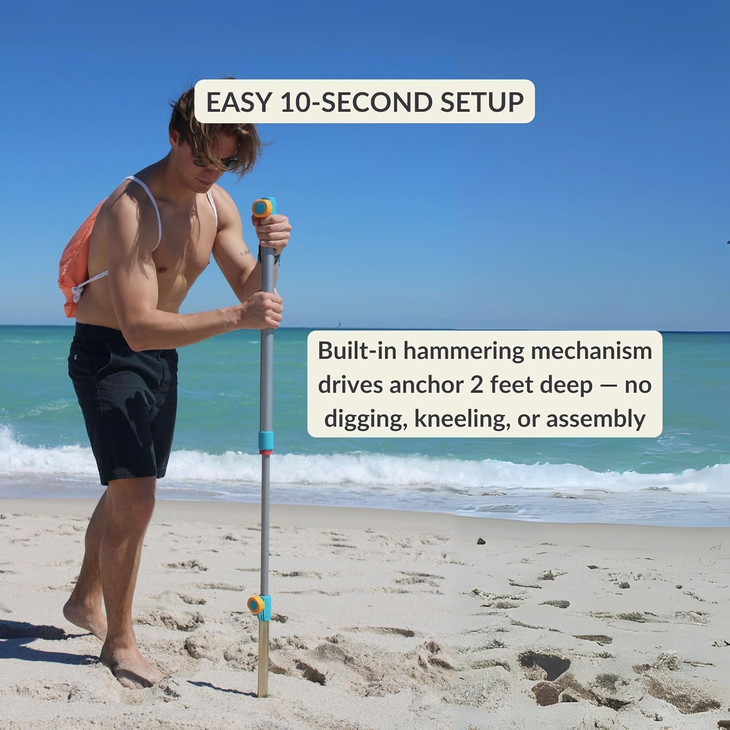 Say goodbye to complex assembly—anchor installs in seconds with no digging, twisting, or extra tools. Compatible with all beach types, including soft, compact, pebbly, and clay-based sand. -