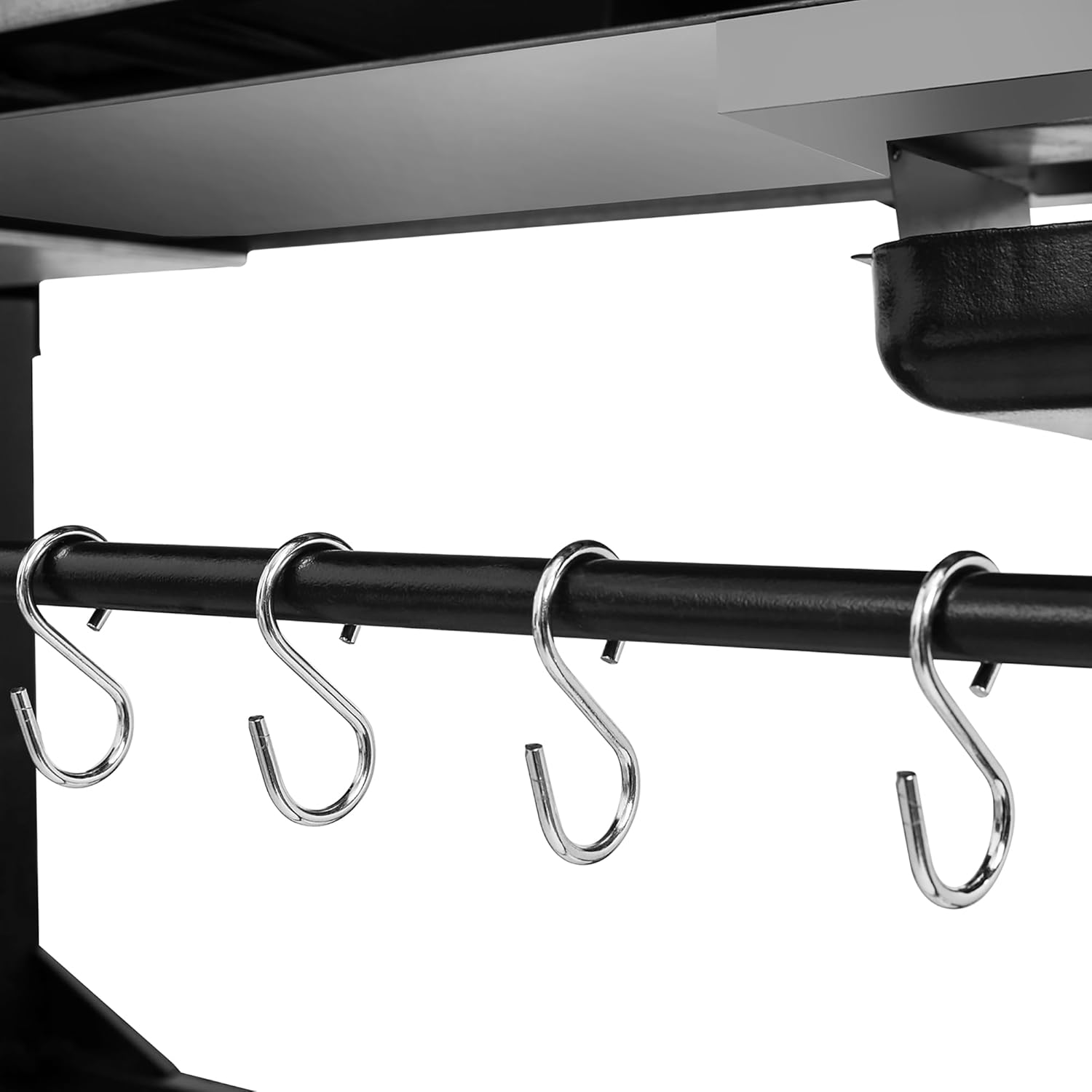 Spacious Prep Area – Two fixed side shelves offer generous prep space, while the lower bar keeps utensils and accessories within arm’s reach.